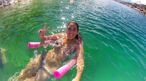 No trajeto, antes de chegar na cachoeira principal (do mirante), a gente passa por 2 pontos para mergulho entre os canyons e pela cachoeira LAGOA AZUL onde tem o famoso BAR FLUTUANTE.